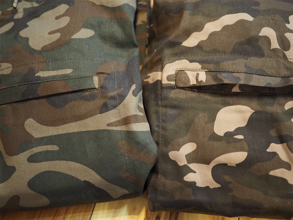 カラーは「左:迷彩グリーン」と「右:迷彩グレー」正直、ぱっと見わかりにくです。